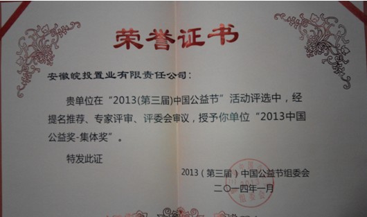 公司榮獲“2013中國(guó)公益獎(jiǎng)-集體獎(jiǎng)”