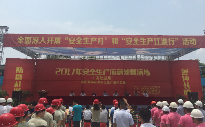 為全面貫徹落實(shí)各級(jí)政府部門(mén)、集團(tuán)公司關(guān)于安全生產(chǎn)月活動(dòng)的重要精神,開(kāi)展以“全面落實(shí)企業(yè)安全生產(chǎn)主體責(zé)任”為主題的 “安全生產(chǎn)月”活動(dòng),進(jìn)一步提高公司各在建項(xiàng)目的安全生產(chǎn)意識(shí),2017年6月28日,由集團(tuán)公司主辦,置業(yè)公司、阜陽(yáng)城市公司承辦,于阜陽(yáng)濱河花園工程項(xiàng)目部施工現(xiàn)場(chǎng)舉行2017年安全生產(chǎn)應(yīng)急處置演練。