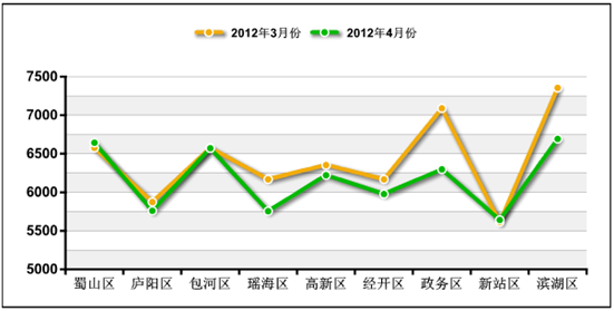 2012年3月份份合肥住宅區(qū)屬銷售均價(jià)及環(huán)比變化情況一覽圖