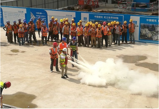 演練活動(dòng)開始前,由總包單位進(jìn)行消防器材的演練培訓(xùn),指導(dǎo)現(xiàn)場(chǎng)各個(gè)工種如何正確使用消防器材。隨后,項(xiàng)目部負(fù)責(zé)人宣講本次安全月的主題以及組織本次安全應(yīng)急活動(dòng)的必要性。最后,由監(jiān)理單位,總包單位及分包單位等一起進(jìn)行消防應(yīng)急演練活動(dòng)并圓滿完成。