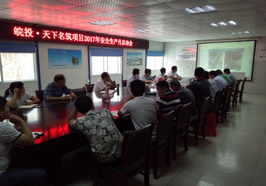 2017年6月16日,合肥天下名筑項目召開2017年安全生產(chǎn)月啟動會,項目部、中建五局、遠(yuǎn)信監(jiān)理相關(guān)負(fù)責(zé)人參加。
