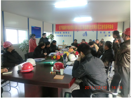 2011年12月10日下午,合肥市建筑質(zhì)量安全監(jiān)督站站長(zhǎng)攜安徽省建設(shè)廳省級(jí)安全質(zhì)量標(biāo)準(zhǔn)化示范工地檢查組一行,對(duì)天下錦城R1地塊學(xué)校及幼兒園工地進(jìn)行檢查驗(yàn)收。公司天下錦城項(xiàng)目部、合肥工大監(jiān)理、水安公司相關(guān)領(lǐng)導(dǎo)及項(xiàng)目部相關(guān)負(fù)責(zé)人陪同檢查。