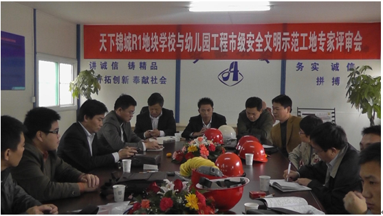 2011年11月18日上午,公司組織天下錦城R1地塊學(xué)校及幼兒園工程創(chuàng)建市級安全文明示范工地專家評審會,合肥市質(zhì)量安全監(jiān)督站、安徽水安公司、合肥工大監(jiān)理領(lǐng)導(dǎo),以及天下錦城項目部代表參加。
