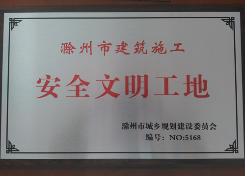 2016年8月31日,滁州市城鄉(xiāng)規(guī)劃建設(shè)委員會(huì)評(píng)審工作組蒞臨水岸星城綜超項(xiàng)目工地現(xiàn)場,對(duì)現(xiàn)場安全文明情況進(jìn)行實(shí)地考核。經(jīng)過考評(píng),皖投·水岸星城二期綜超項(xiàng)目榮獲“滁州市建筑施工安全文明工地”稱號(hào)。