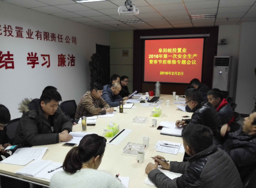 2016年2月2日,阜陽城市公司組織召開濱河花園項目2016年度第一次安全生產(chǎn)暨春節(jié)前維穩(wěn)安全專題會議。阜陽城市公司工程技術(shù)中心,濱河花園項目一期監(jiān)理、總包單位相關負責人參加會議。