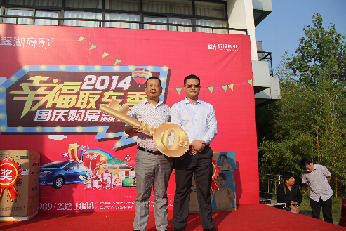 在抽獎活動開始前,主持人首先隆重介紹了皖投•水岸星城項目概況,并著重介紹了水岸星城最新的售房信息。下午3時“幸福2014 取車季”正式開始,活動持續(xù)近2個小時,隨著各獎項的一一送出,特等汽車大獎最終由項目二期祝昔銀業(yè)主幸運摘得,本次取車季活動圓滿結(jié)束。