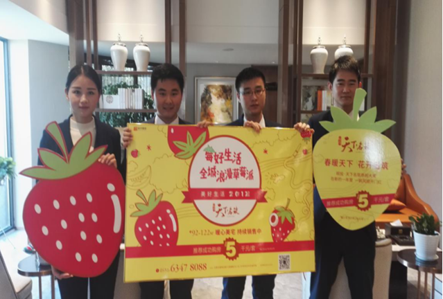 早春二月,春暖花開,草莓作為這個季節(jié)備受歡迎的水果,總是讓人欲罷不能。皖投·天下名筑為合肥這座城市的有情人送上真誠的祝福,舉辦了“莓好生活,全城浪漫草莓派”的甜蜜活動,一時間引發(fā)全城人關(guān)注與熱議。活動期間,皖投·天下名筑的工作人員相繼派送了地鐵1號線、各家媒體、合作單位、老業(yè)主以及各家拓展的渠道公司,為一直以來關(guān)心支持皖投的朋友們以及合肥廣大新客戶送上了一份紅紅的甜蜜。接到派送到手上的新鮮草莓之后,大家喜笑顏開,共享皖投·天下名筑送上的新春第一份甜蜜,也為情人節(jié)增添了一份紅紅的喜悅。同時,一季度推出泛營銷推薦成交獎勵政策,推薦新客戶成交將獲得5000元/套的獎勵,也在本次活動中得以大規(guī)模傳播,在92-122㎡高層續(xù)熱銷、洋房即將入市周期內(nèi),快速拓展銷售市場。