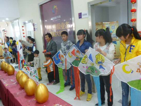 下午五時,參賽的孩子們紛紛拿著制作好的風(fēng)箏來到迎河路上。在家長們的幫助下,一個個風(fēng)箏飛舞于蚌埠國際汽車城上空。正式宣告蚌埠國際汽車城首屆風(fēng)箏DIY活動圓滿結(jié)束。