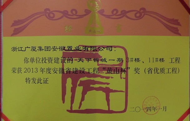 近日,省住房城鄉(xiāng)建設(shè)廳公布了獲得2013年度安徽省建設(shè)工程“黃山杯”獎(省優(yōu)質(zhì)工程)的獲獎項目及參建企業(yè)名單,我司開發(fā)建設(shè)的天下錦城項目一期二標段3#樓、11#樓工程榜上有名。