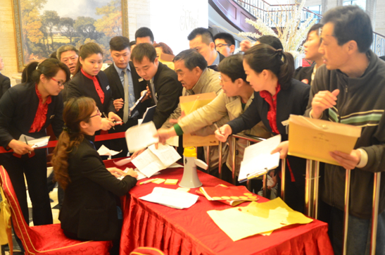 清晨細(xì)雨綿綿,但抵擋不住眾多購房者的熱情。早上8點(diǎn)鐘左右,營銷中心等候區(qū)已擠滿了人,他們都在等待著正式選房時間的到來。本次開盤采用電子搖號的形式,9點(diǎn)18分正式產(chǎn)生第一輪的8組號碼,8組客戶按照搖號的順序依次進(jìn)入銷售現(xiàn)場,在置業(yè)顧問熱情講解中,選房、下定,整個流程秩序井然,絕大部分客戶都選到了自己滿意的房源。