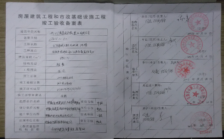 2015年10月30日,天下錦城R5住宅工程完成竣工備案網(wǎng)上公示順利取得《房屋建筑工程和市政基礎(chǔ)設(shè)施工程竣工驗收備案表》。