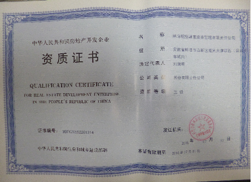 近日,經(jīng)市住建委、資料科、質(zhì)量監(jiān)督局等多部門相關(guān)負責(zé)人的相互協(xié)調(diào)、嚴(yán)格審查,蚌埠皖投融富公司順利獲得住房和城鄉(xiāng)建設(shè)部頒發(fā)的“房地產(chǎn)開發(fā)三級資質(zhì)證書”。