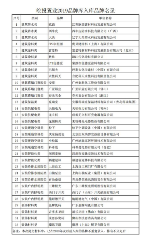 附件:皖投置業(yè)2019品牌庫(kù)入庫(kù)品牌名錄