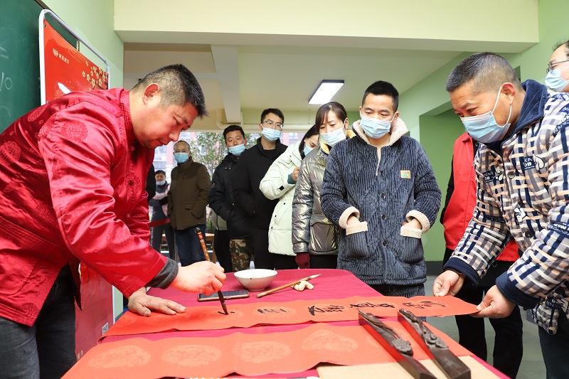 活動(dòng)現(xiàn)場(chǎng),支部書記杜玲代表公司黨支部向業(yè)主們致以新年美好祝福。書法家現(xiàn)場(chǎng)揮毫潑墨創(chuàng)作春聯(lián),將一幅幅飄散著清新墨香、寓意吉祥的春聯(lián),送到現(xiàn)場(chǎng)業(yè)主手中。支部黨員們現(xiàn)場(chǎng)悉心做好防疫和服務(wù)工作。