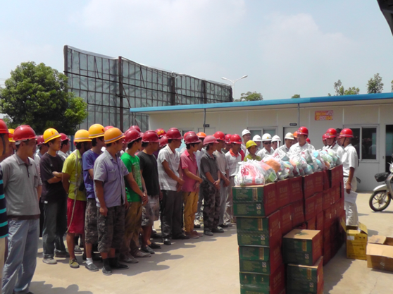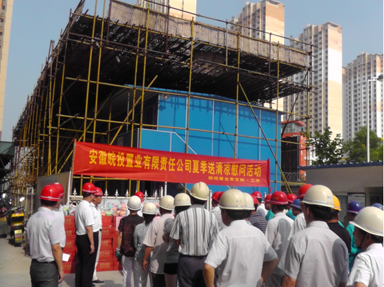 2012年7月21日,公司黨支部聯(lián)合工會(huì)赴項(xiàng)目工程現(xiàn)場(chǎng)開(kāi)展夏日送清涼活動(dòng),慰問(wèn)奮戰(zhàn)在工程建設(shè)一線的廣大建設(shè)者們。
